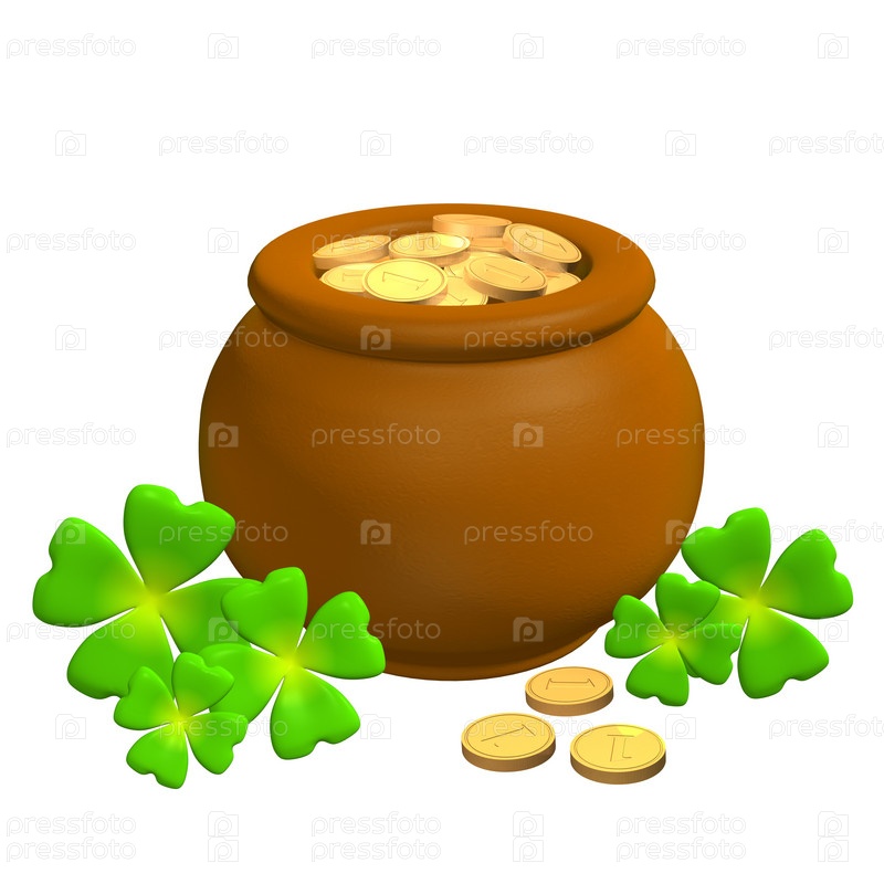 Глинистый горшок с золотыми монетами