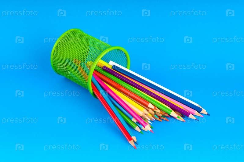 Разноцветные карандаши на голубом фоне