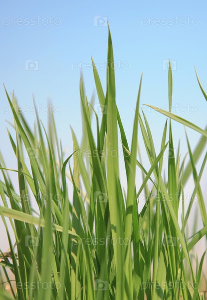 Зеленая трава на фоне голубого неба