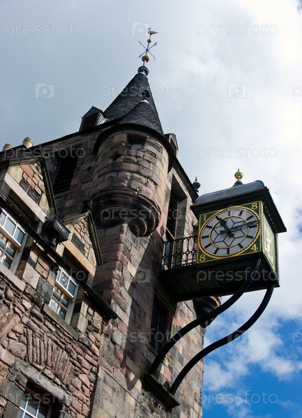 Старые часы на каменной башне, Эдинбург, Шотландия