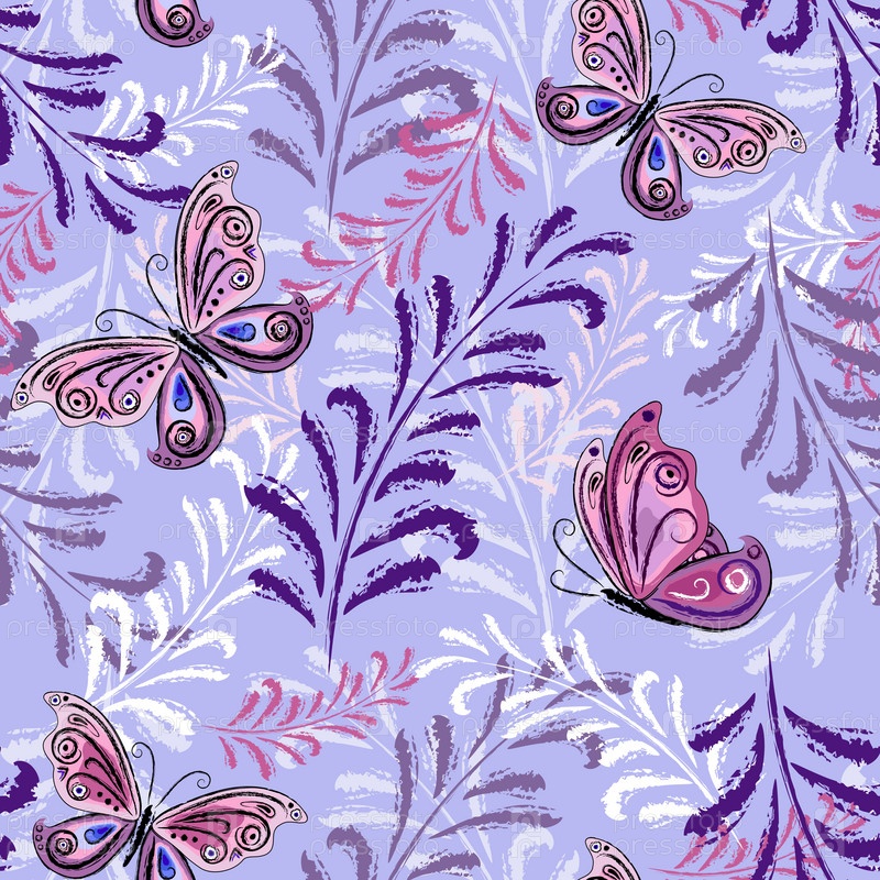 Яркий цветочный фон с бабочками