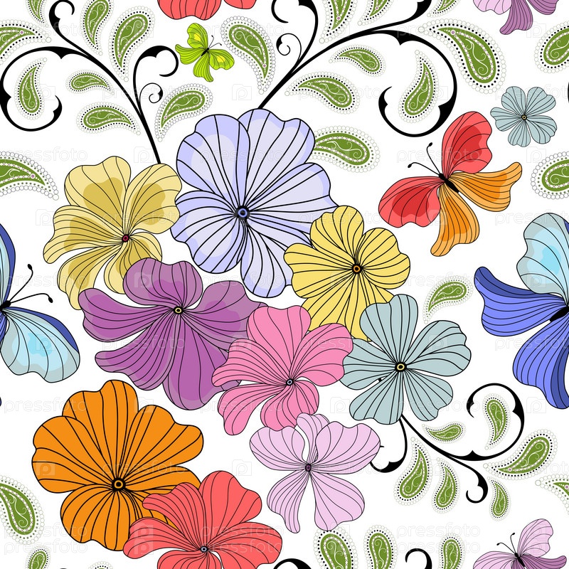 Яркий цветочный фон с бабочками