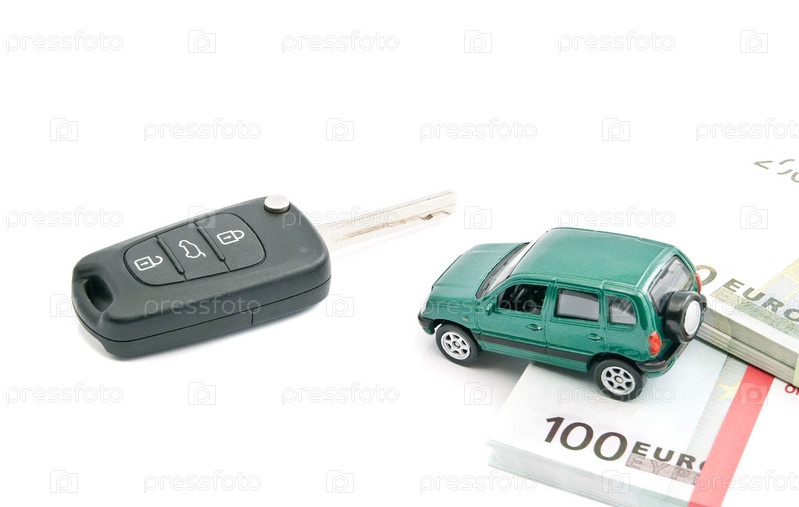 Зеленый автомобиль, евро купюры и ключи от автомобиля