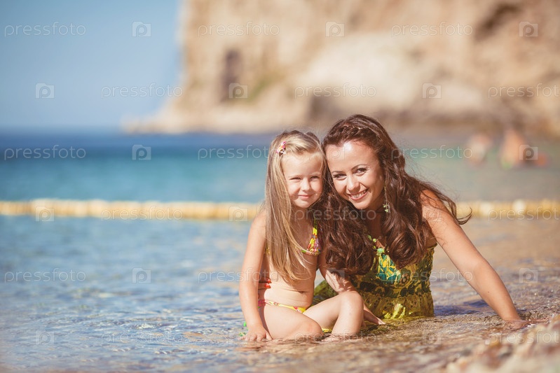 Мама с дочкой на пляже
