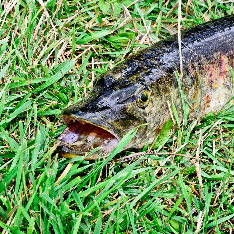 Свежая щука на траве