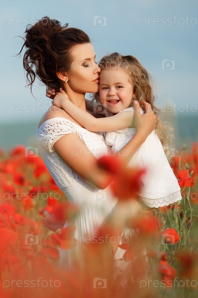 Мама с дочкой на маковом поле