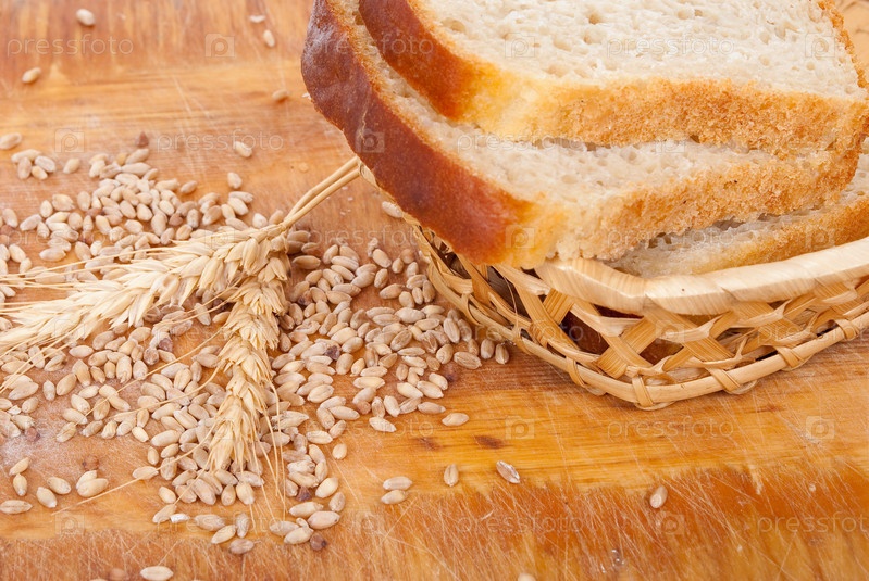 Свежий хлеб и пшеничные зерна