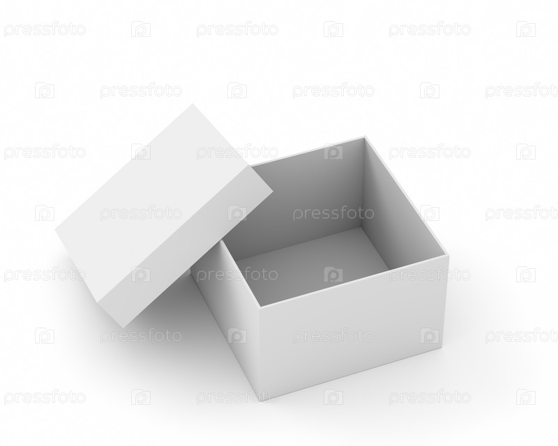 Открытая коробка с крышкой, на белом фоне