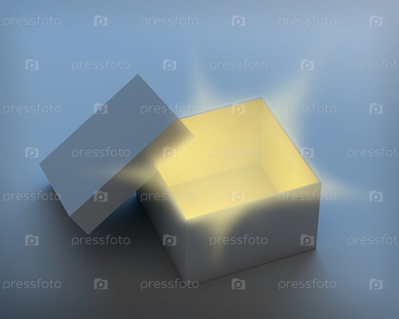 Открытая коробка с магическими лучами света внутри