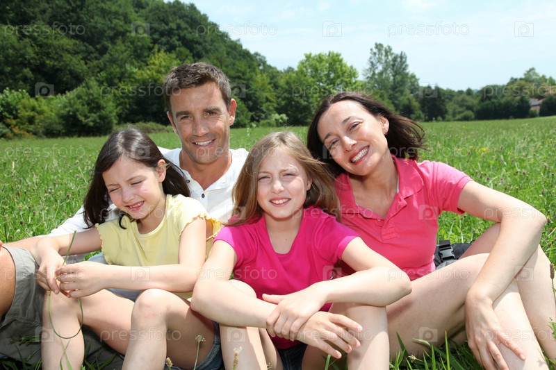 Счастливая семья в парке