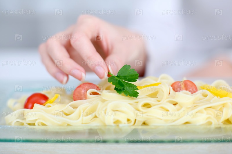 Блюдо макарон с петрушкой