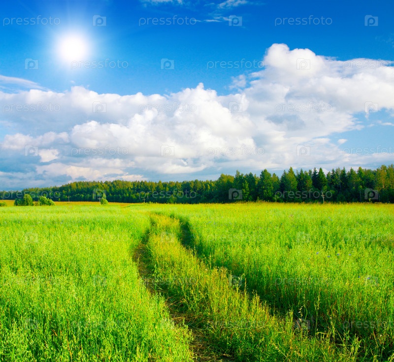 Зеленое поле и голубое небо