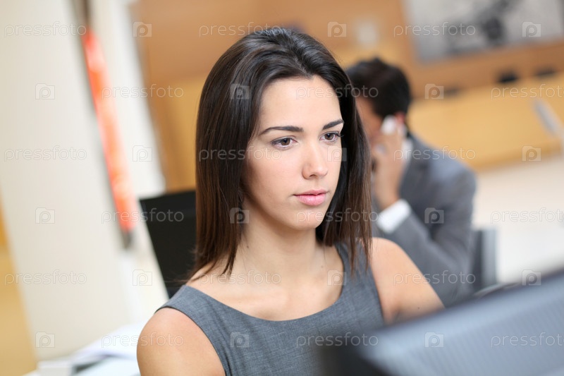 Женщина работающая в офисе перед компьютером
