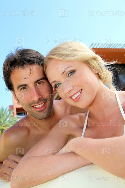 Пара в бассейне на курорте