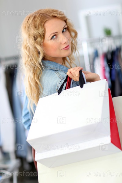 Улыбающиеся женщина, держащая сумки