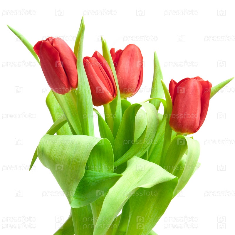 Красные тюльпаны на белом