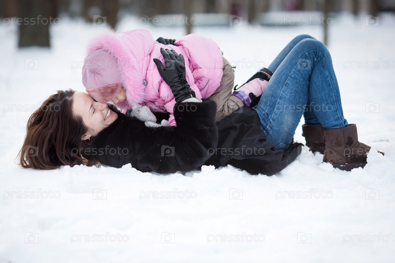 Счастливая семья в зимнем парке