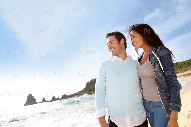 Романтическая пара прогулки на пляже