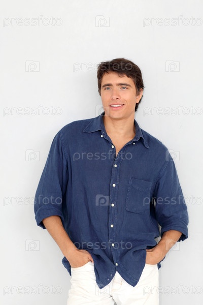 Портрет молодого человека, стоящего на белом фоне