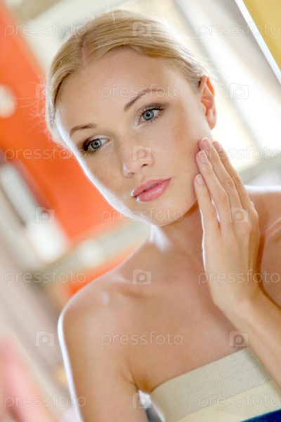 Портрет красивой женщины, глядя в зеркало