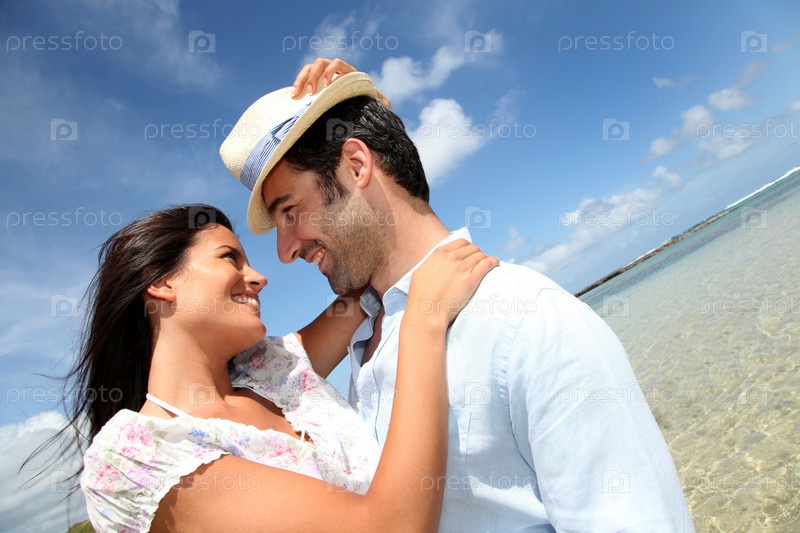 Пара влюбленных, обнимая друг друга на пляже
