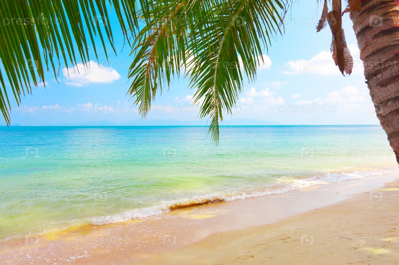 Красивый пляж с кокосовой пальмы