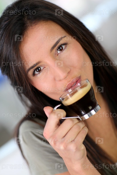 Красивая женщина пьет эспрессо