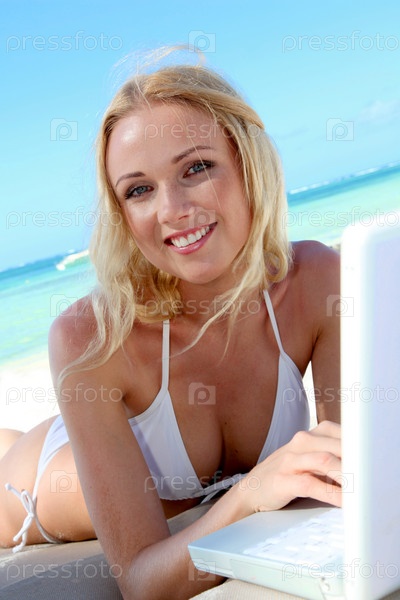 Красивая блондинка на пляже