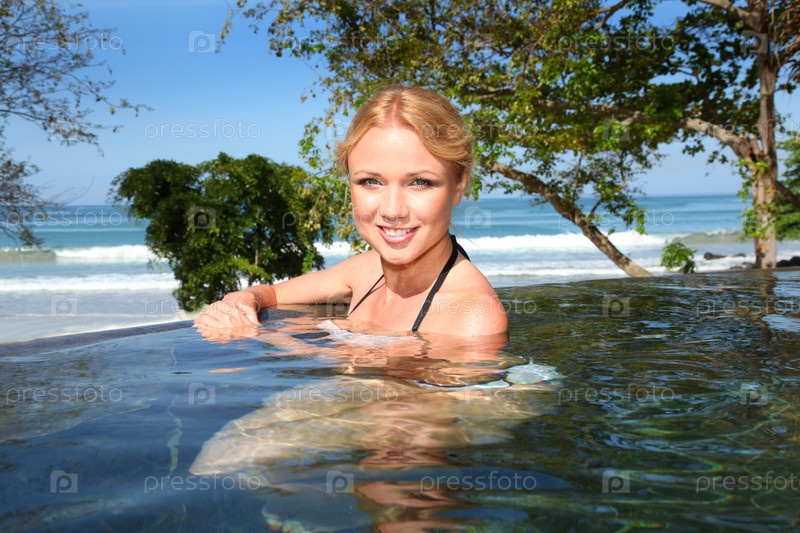 Красивая блондинка в бассейне
