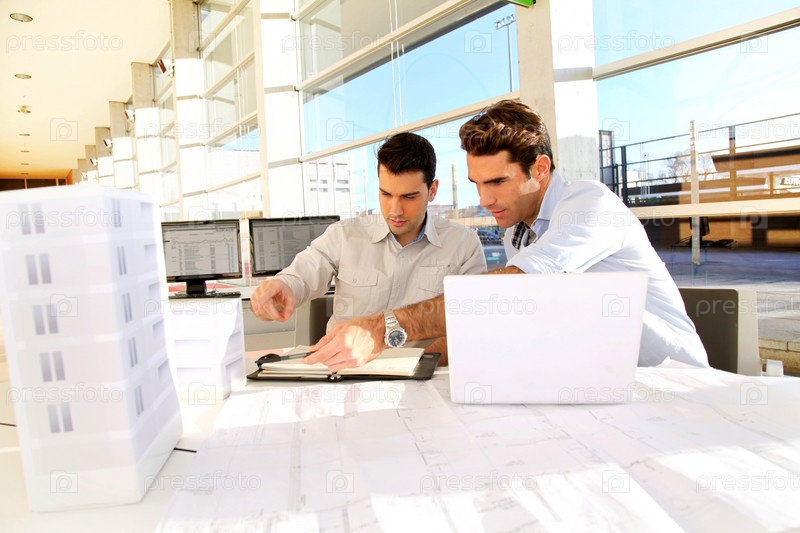 Молодые архитекторы, работающие над проектом