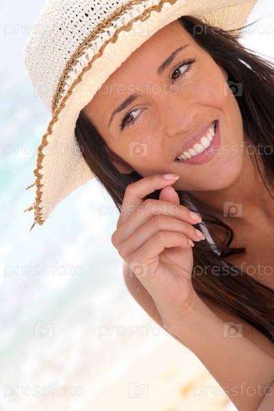 Женщины на пляже с соломенной шляпе
