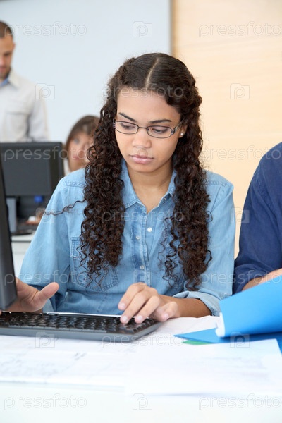 Студент работает на настольном компьютере