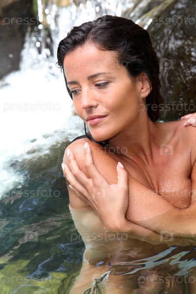 Привлекательная брюнетка в реке