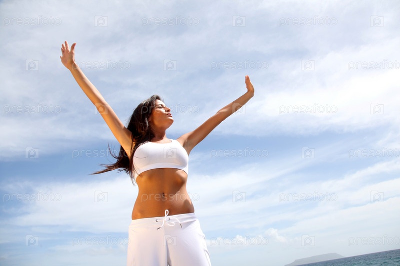Женщина протягивать руки к небу