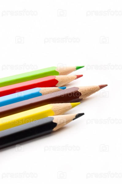 Разноцветные карандаши на белом фоне