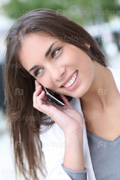 Красивая девушка разговаривает по телефону в городе