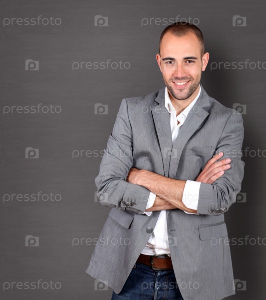 Бизнесмен на сером фоне