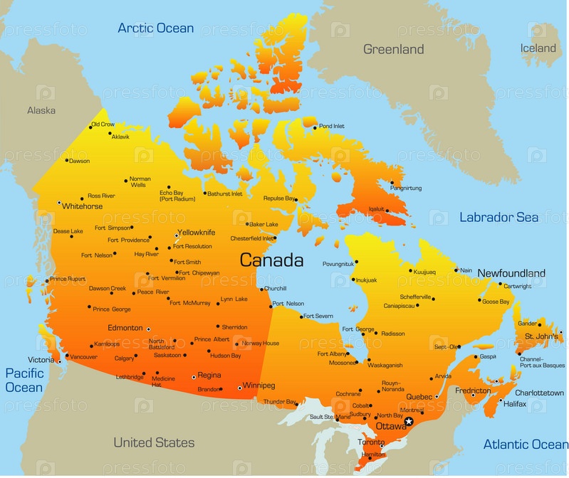 Векторная иллюстрация с географической картой Канады