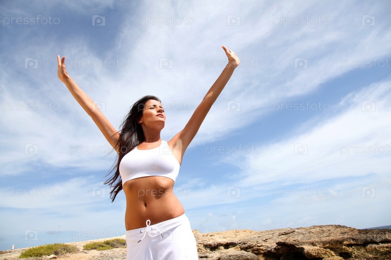Женщина протягивать руки к небу