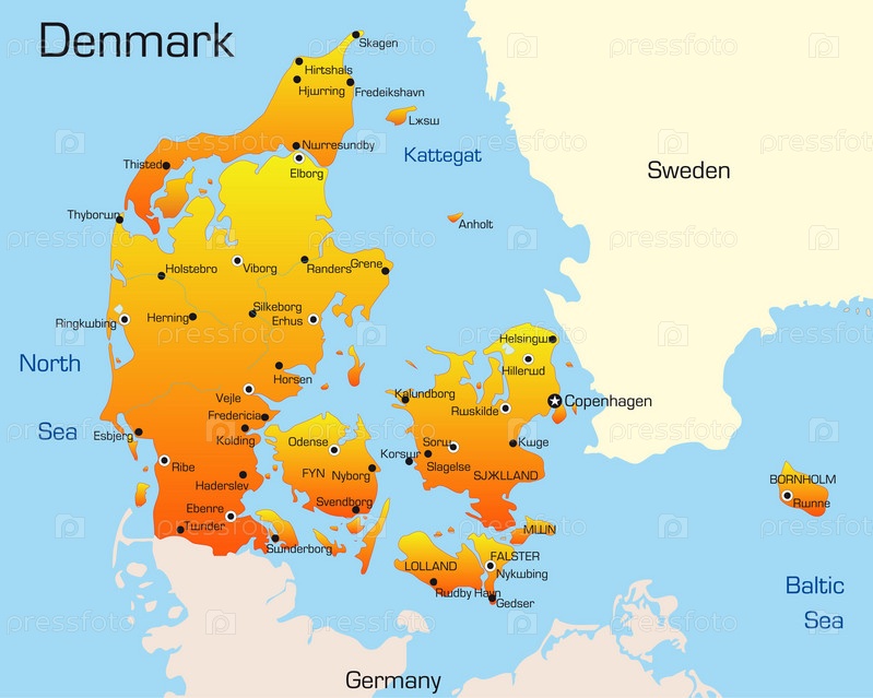 Векторная иллюстрация с географической картой Дании