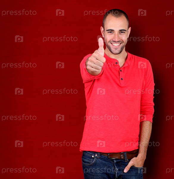 Человек на красном фоне