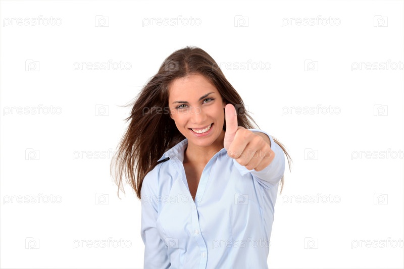 Красивая женщина показывает палец вверх