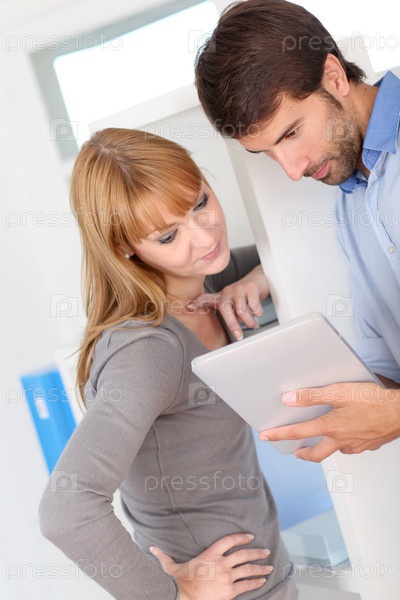 Работники офиса на планшете
