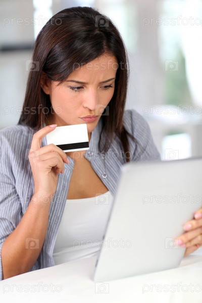 Молодая женщина делает онлайн покупки