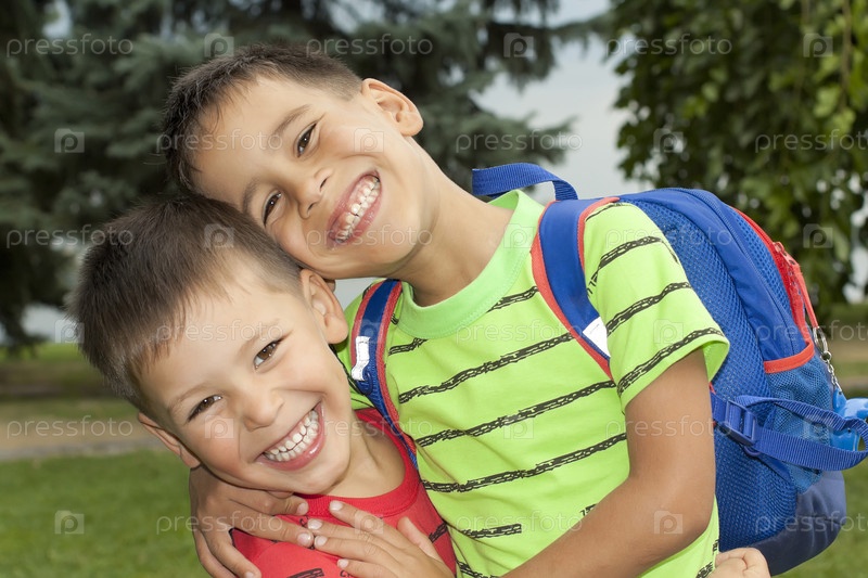Два брата гуляют в парке