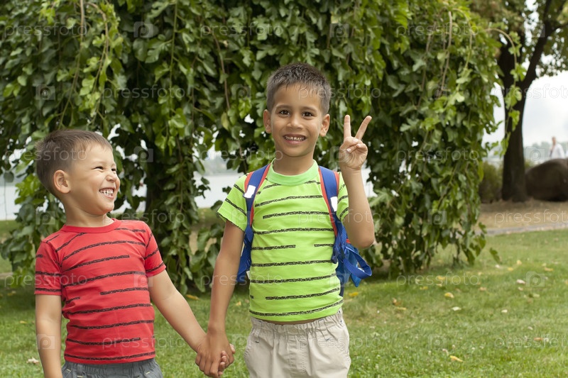 Два брата гуляют в парке