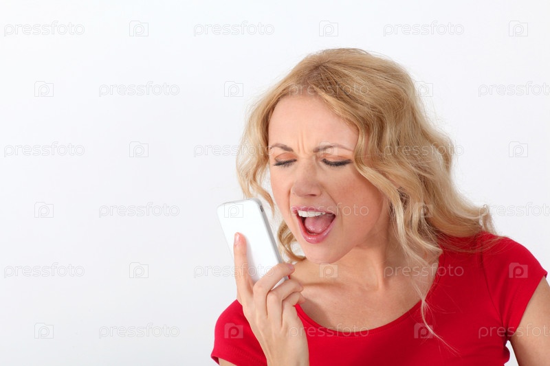 Блондинка с красной рубашке