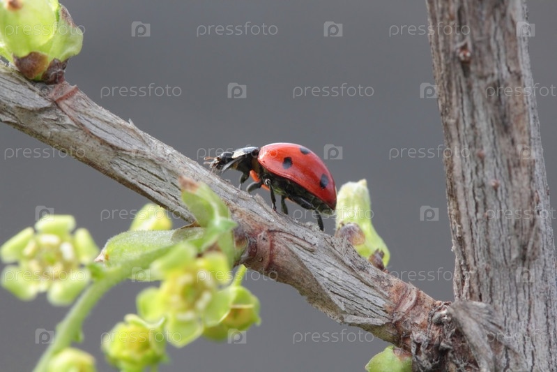 Божья коровка на ветке крупным планом
