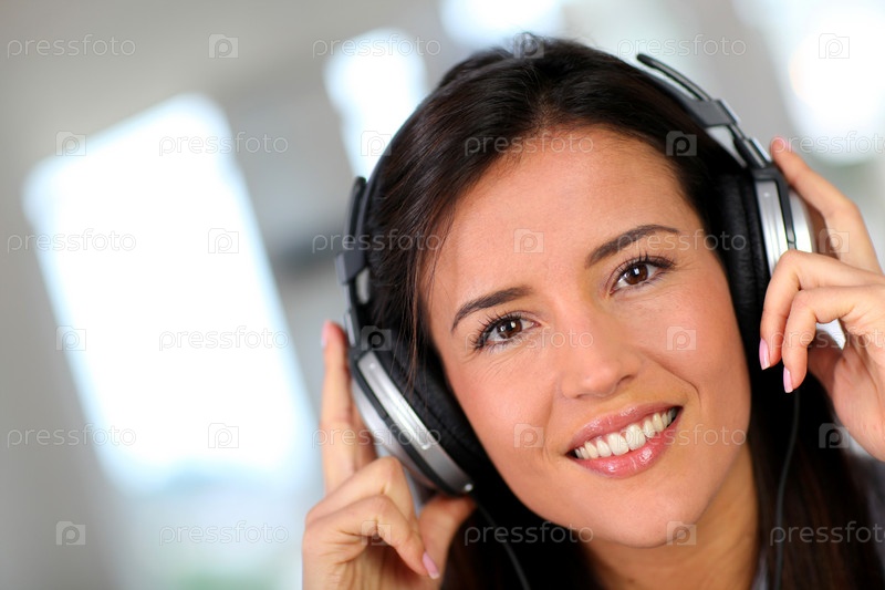 Красивая молодая женщина слушать музыку