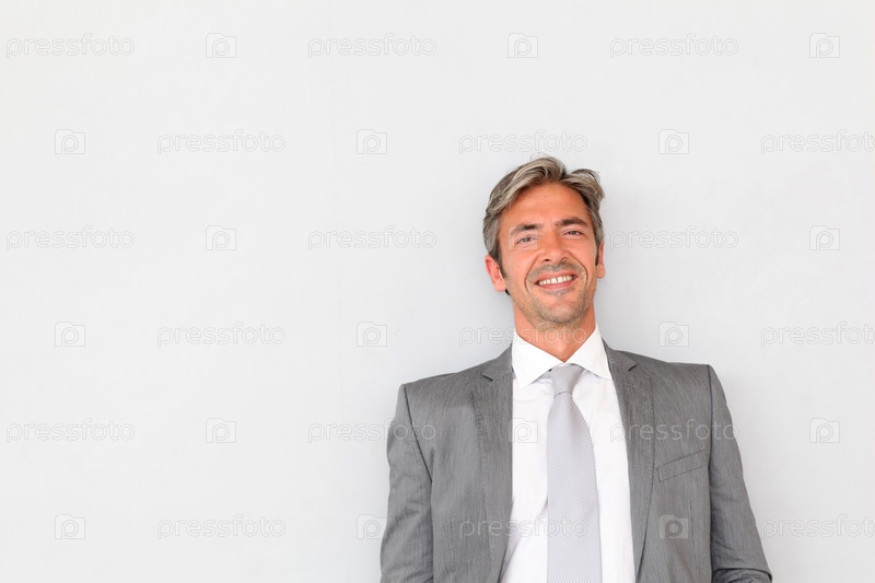 Красивый бизнесмена на сером фоне